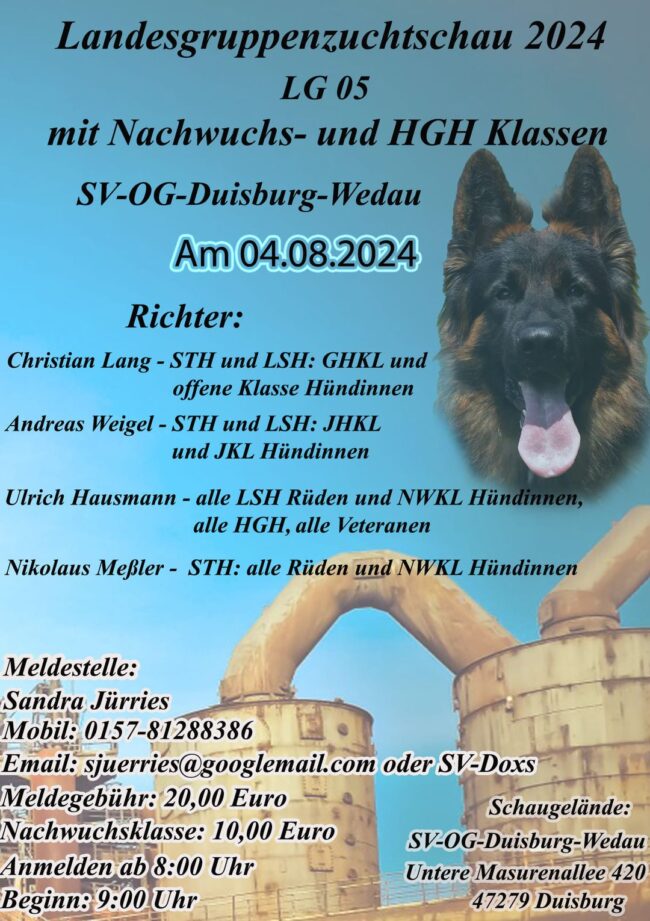 Wir freuen uns die Landesgruppenzuchtschau zum vierten Mal in Folge ausrichten zu dürfen.Wir freuen uns auf zahlreiche Meldungen, Zuschauer und natürlich schönes Wetter.