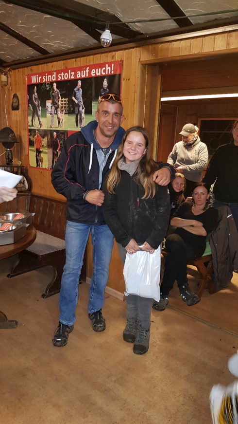 Leider hat Schröder die Vorausübung abgekürzt, indem er zu den Apportierhölzern gelaufen ist. Somit war diese Übung mit 0 zu bewerten. Alina bekam 86 Punkte…..und wenn wir jetzt alle mitgerechnet haben, hätten es 96 Punkte sein können und das für ein 12 jähriges Mädchen, welches erst seit einem Jahr richtigen IPO Sport macht. Alina belegte mit ihrem Teampartner Frank Rebstock Platz 16 von 28 Teams.