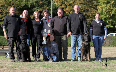 Ein schöner Prüfungstag in der SV OG Aachen Soers ist zu Ende. Frank Rebstock mit seinem Ehdu von der Herrenwiese startete erfolgreich mit 98 Punkten in der Fährte, konnte mit einer sehr arbeitsfreudigen und temperamentvollen Unterordnung weitere 98 Punkte unter Leistungsrichter Lajos Földvari erzielen. Im Schutzdienst hat sich das harte Training ausgezahlt und auch hier konnte Frank mit Ehdu 98 Punkte holen. Eine rundum gelungene Prüfung. Das Team Duisburg Wedau konnte sich somit zum zweiten Mal den Vereinswanderpokal sichern!! Herzlichen Glückwunsch!