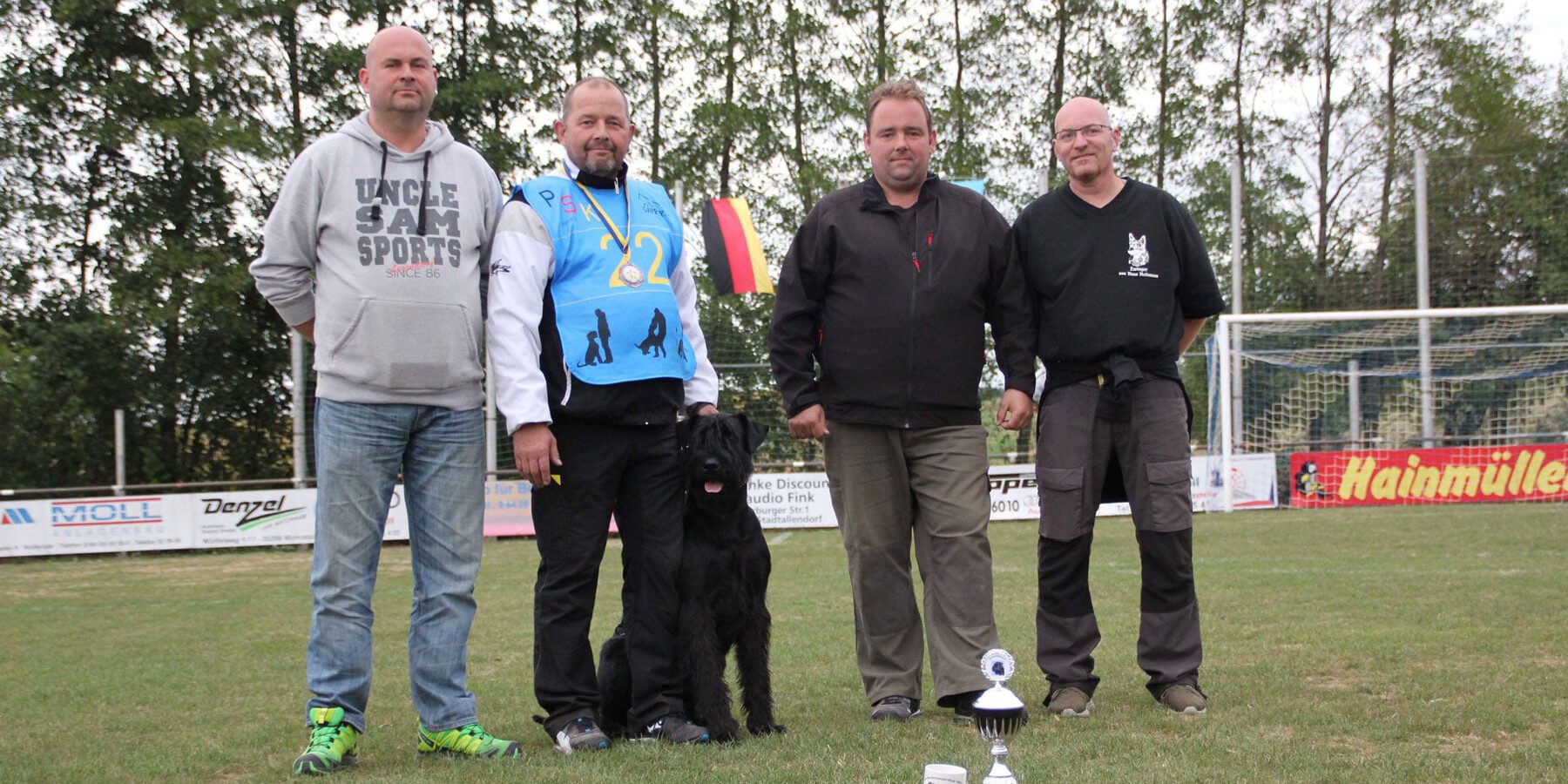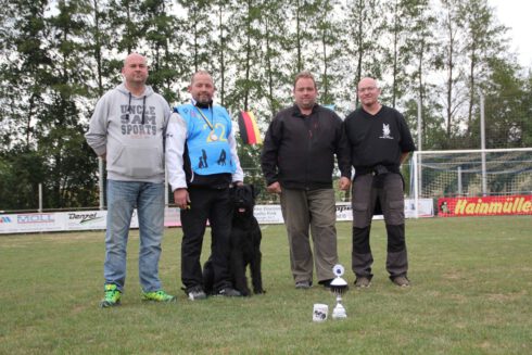 Frank Rebstock startete am Wochenende mit seinem Ehdu von der Herrenwiese auf der PSK DM in Stadtallendorf und erreichte Platz 9 von 32 gestarteten Hunden. Auch wenn sie am Samstag mit hervorragenden 99 Punkten in der Fährte gestartet sind, klappte es in B mit 86 und C 78 Punkten.